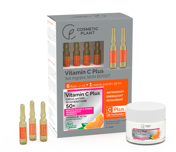 Alegerea unui set cadou de la COSMETIC PLANT înseamnă să dăruiești din suflet. Seturile de îngrijire Skin Boost Vitamin C Plus, care conțin câte o cremă de față și 6 fiole cu vitamina C Tetra, sunt gândite să aducă un plus de sănătate pielii.
