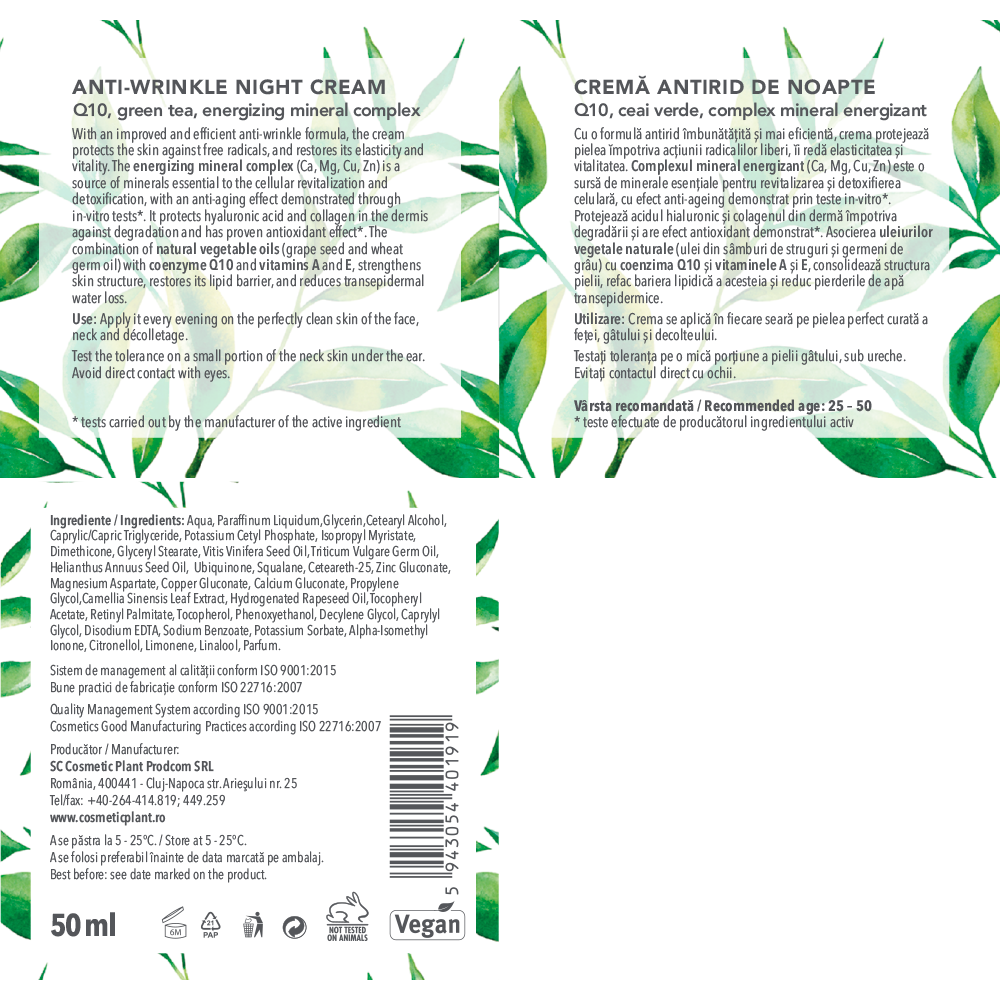 Cremă antirid de noapte Q10 + ceai verde și complex mineral energizant