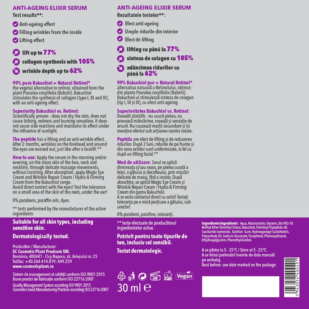 BAKUCHIOL – Anti-Ageing Elixir Serum cu Bakuchiol 99% puritate (Natural Retinol*) și Peptidă