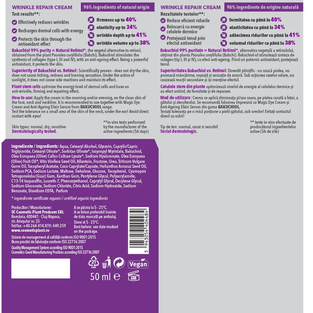 BAKUCHIOL – Wrinkle Repair Cream cu Bakuchiol 99% puritate (Natural Retinol*) și Celule stem din plante