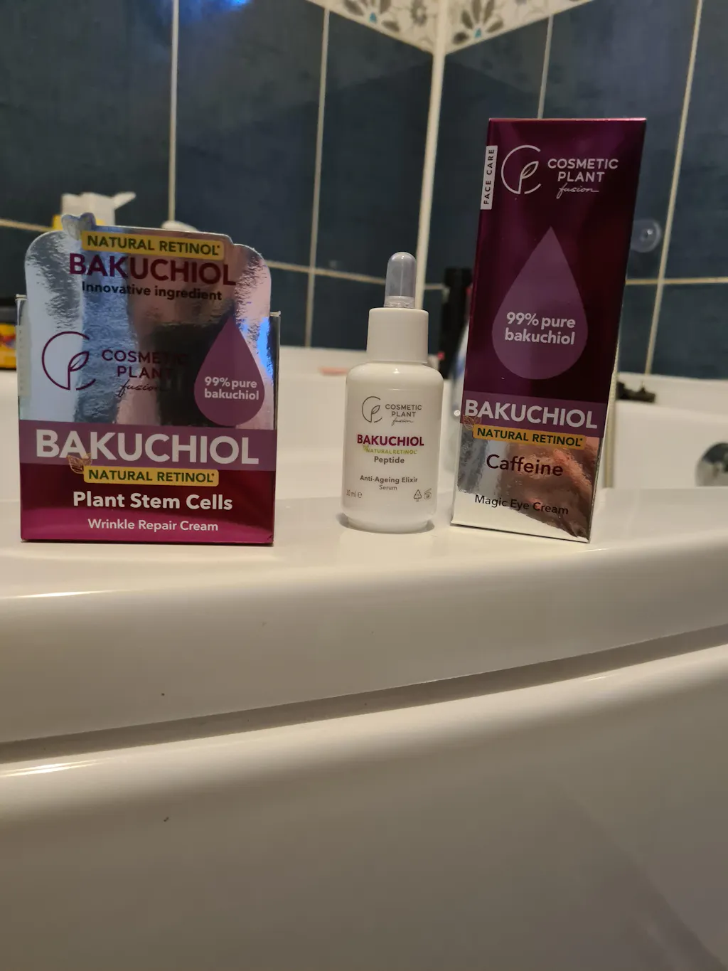 Bakuchiol 99% puritate = Natural Retinol*, alternativa vegetală a retinolului, obținut din planta Psoralea corylifolia, cunoscută sub denumirea de Babchi. Bakuchiol-ul stimulează sinteza de colagen (tip I, III și IV), cu efect anti-ageing. Fiind un puternic antioxidant, protejează tenul.