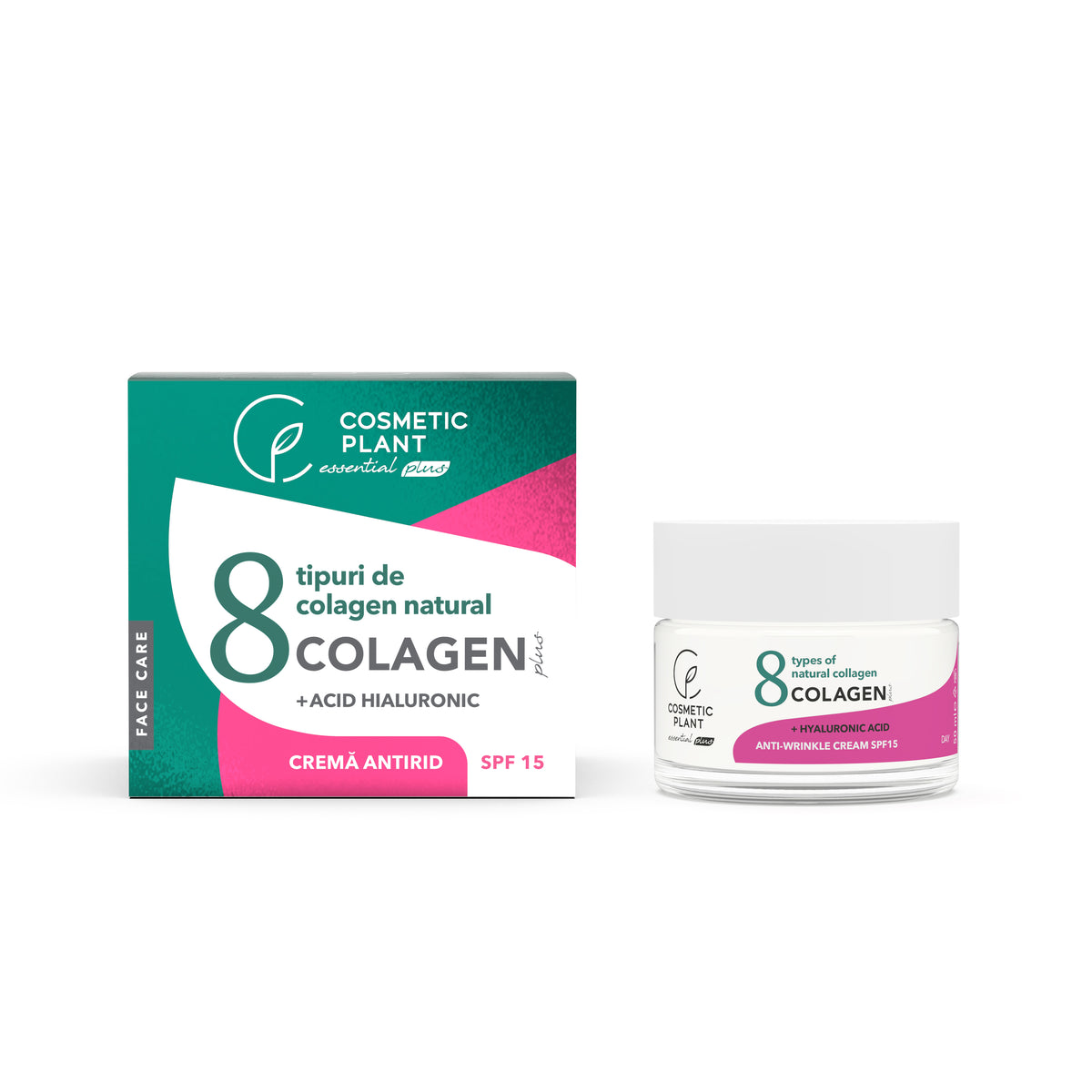Cremă antirid de zi SPF 15 COLAGEN Plus cu 8 tipuri de colagen natural & acid hialuronic & aloe vera