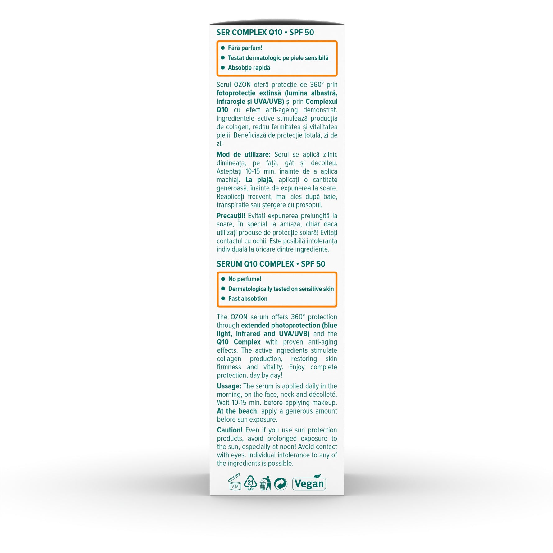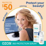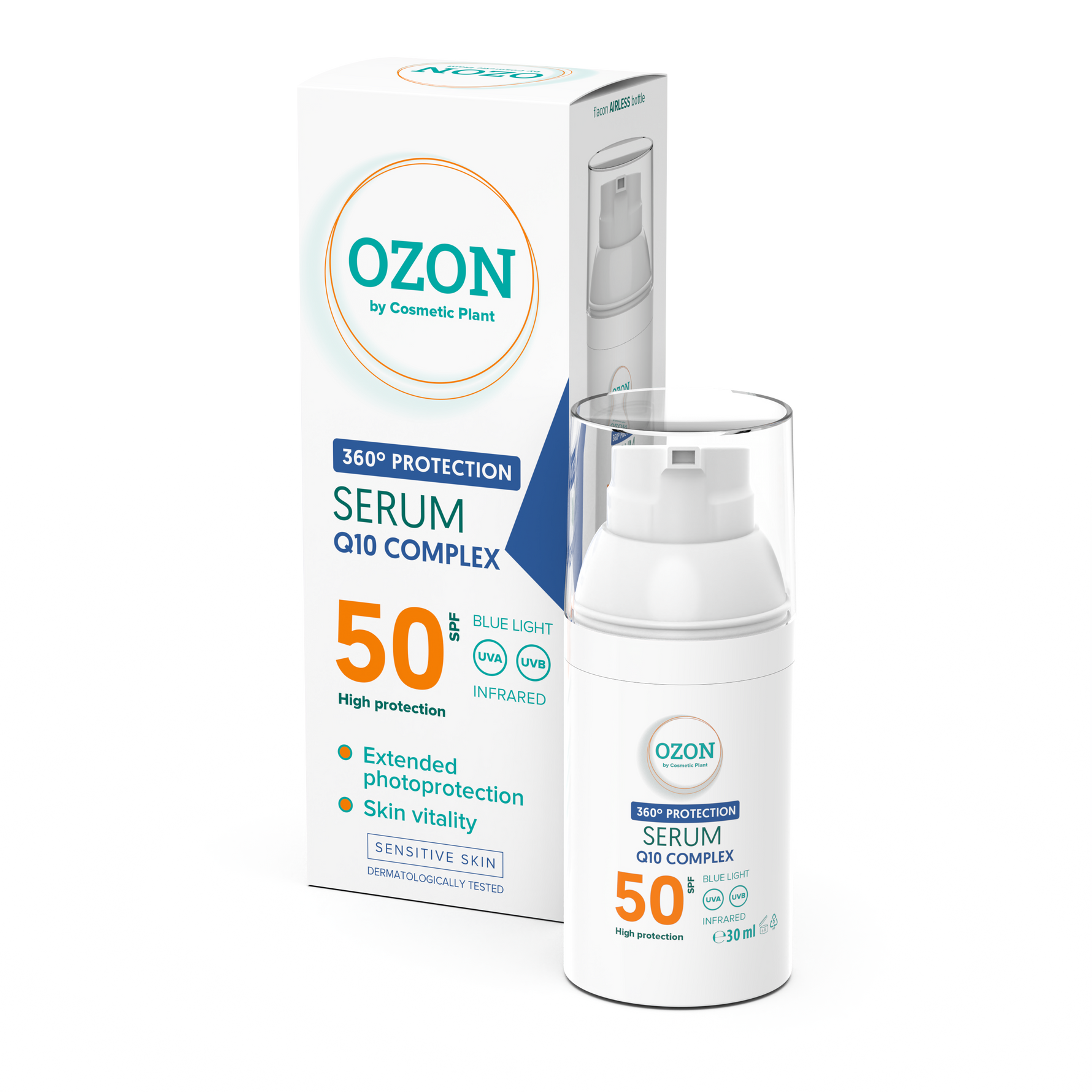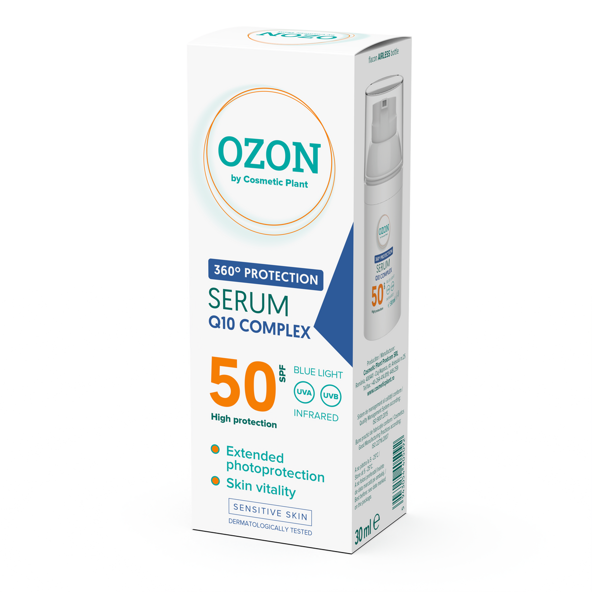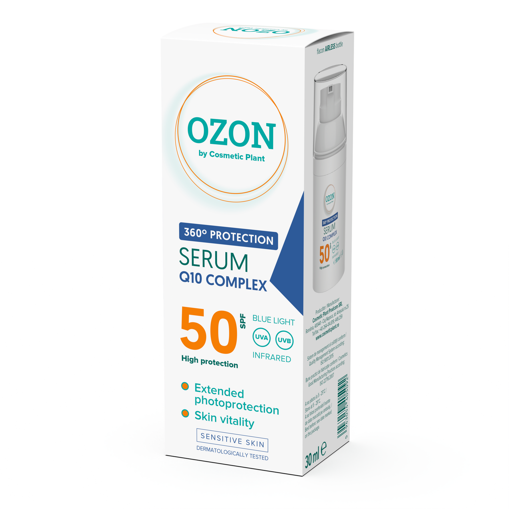 Serul OZON 360° Protection oferă un dublu efect prin protecția completă 360°, combinând fotoprotecția extinsă cu Complexul Q10, care are un efect anti-ageing demonstrat.