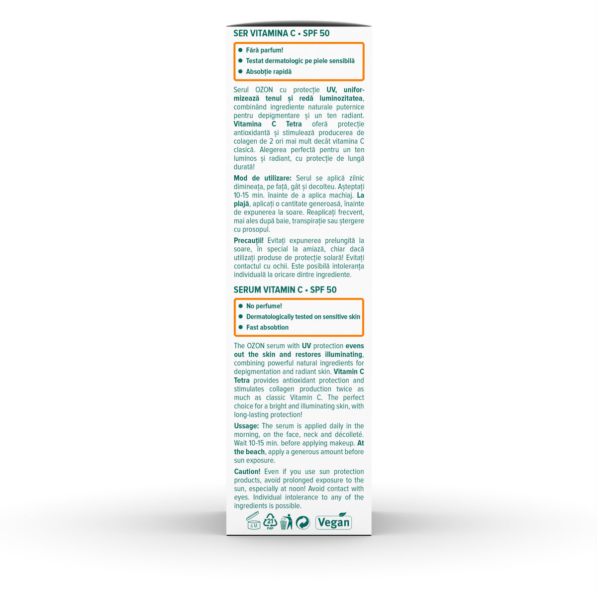 Serul OZON, cu textură lejeră, se absoarbe rapid, fiind destinat utilizării zilnice.