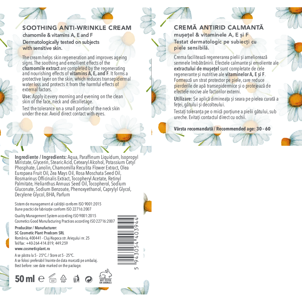 Cremă antirid calmantă extract de mușețel & vitaminele A, E și F