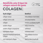 Complexul de Colagen conține 8 tipuri de colagen natural, cu greutate moleculară diferită care pătrund prin epidermă până la stratul mai profund al pielii.