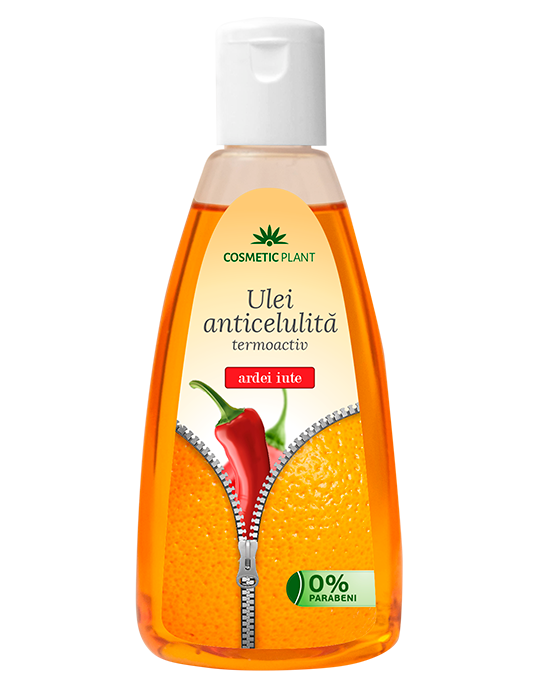 Conceput special pentru masajul anticelulitic, uleiul poate produce o ușoară ȋncălzire a pielii datorită extractului de ardei iute. Stimulează microcirculația ȋn zonele afectate de celulită, asigurând eliminarea grăsimilor din adipocite. Uleiul de măsline prezent ȋn formulă hidratează și catifelează pielea.